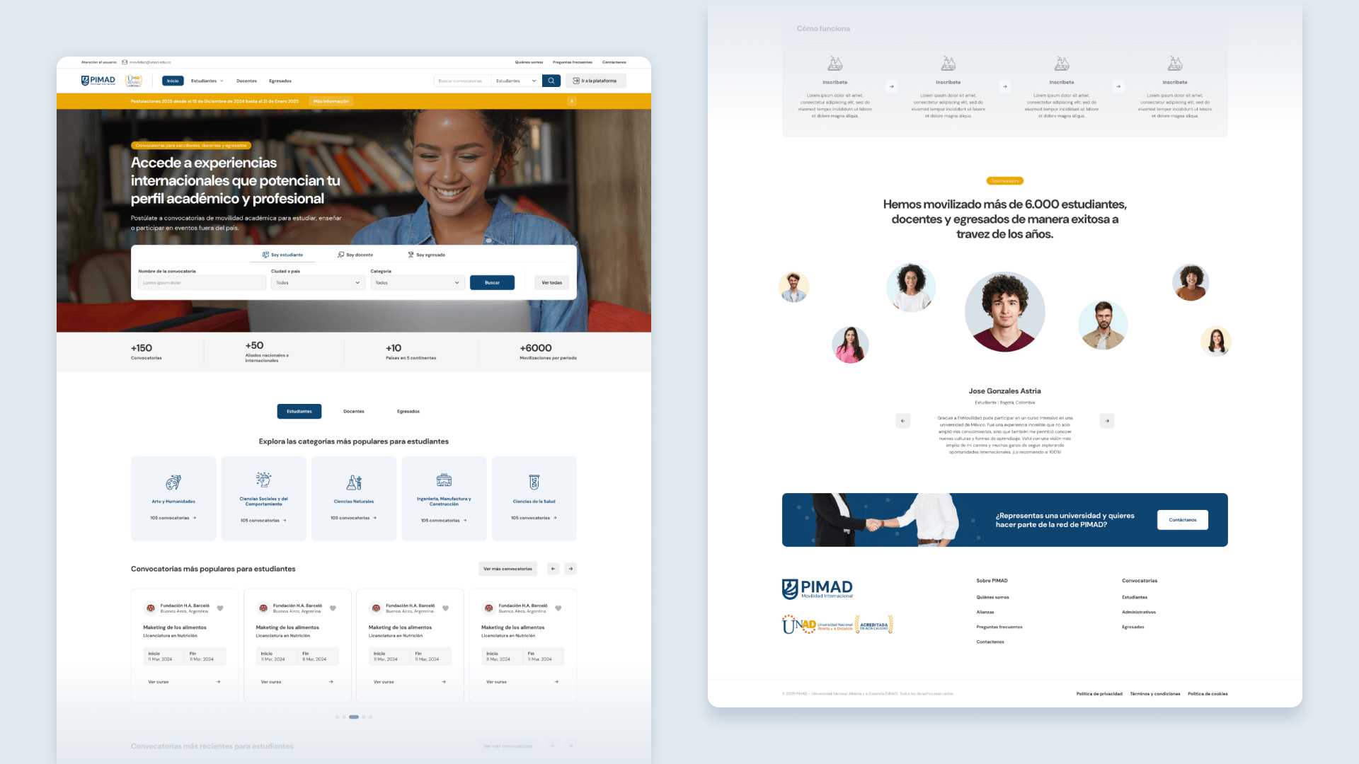 We developed a web platform for UNAD that simplifies international mobility processes for students, faculty, administrative staff, alumni of UNAD, and students from partner institutions. One of the biggest challenges was organizing the complex workflows involved in mobility programs, which require multiple phases and the intervention of many university departments. With PIMAD, the processes of application, approval, administration, and tracking of mobilities are now much easier, more organized, and accessible for the entire academic community.